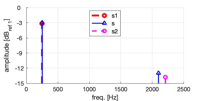 s(t)= A_1 \sin (2 \pi F_1 t) + A_2 \sin (2 \pi F_2 t)