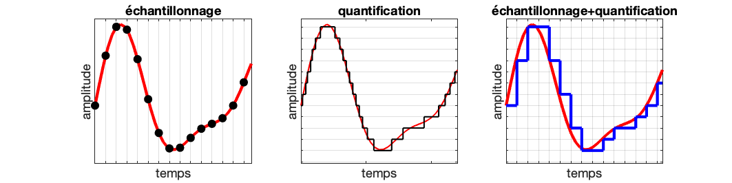 l’échantillonnage prélève, le plus souvent à intervalles réguliers, la valeur du signal ;